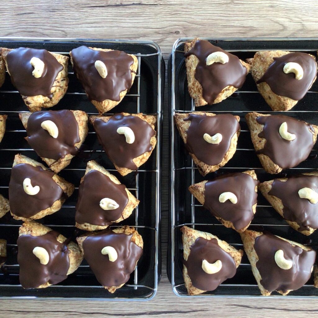 ①チョコがけナッツでなくちゃ! 380 (カシューナッツとくるみのスコーンにたっぷりチョコをかけた冬の人気スコーン)