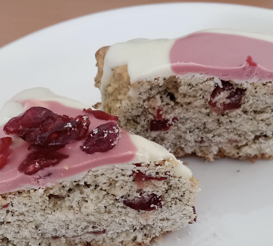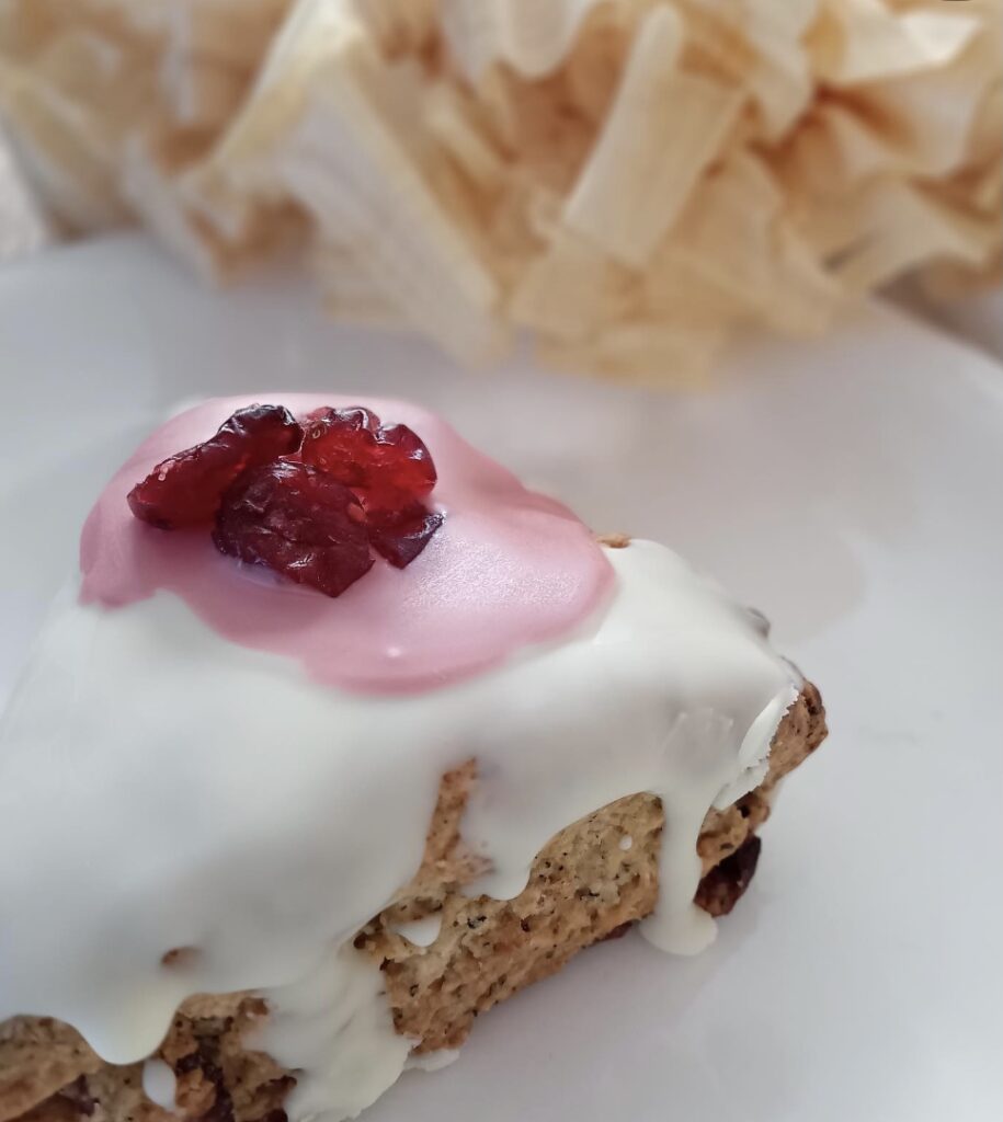 ②クリスマスのスコーン 380 (去年に引き続き今年も!クランベリーのスコーンにホワイトチョコとイチゴチョコでおめかししたスコーン)